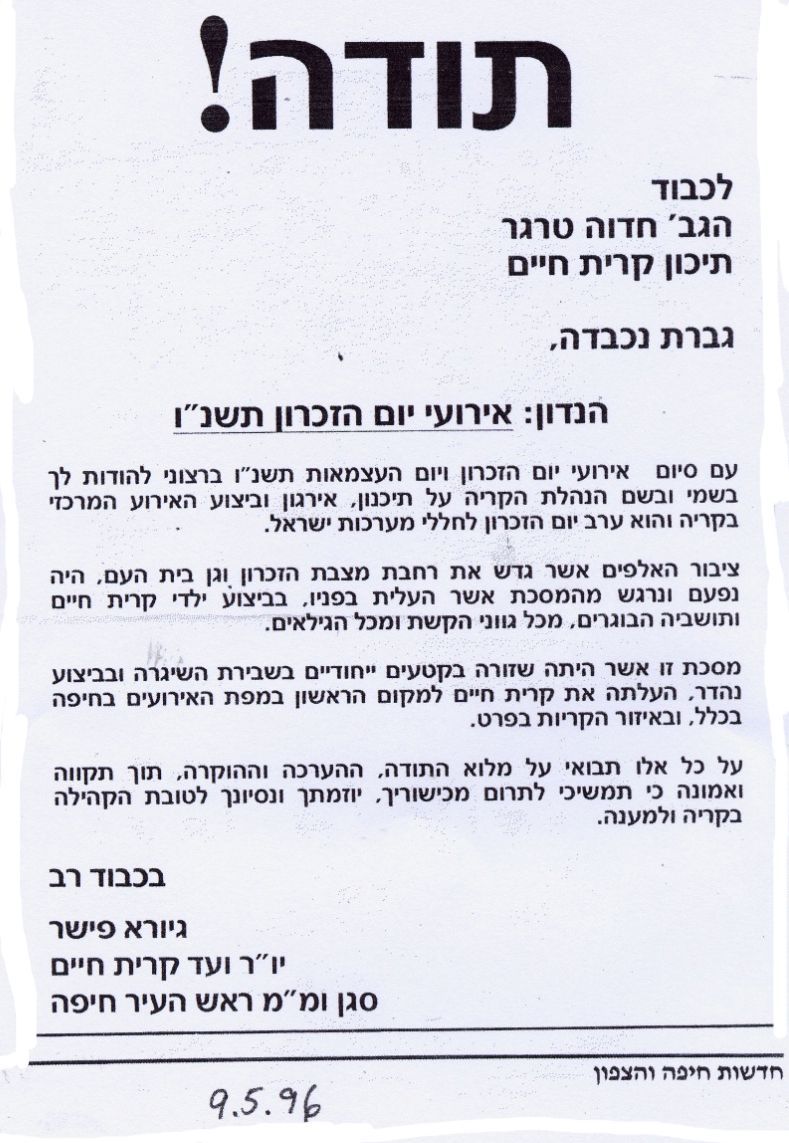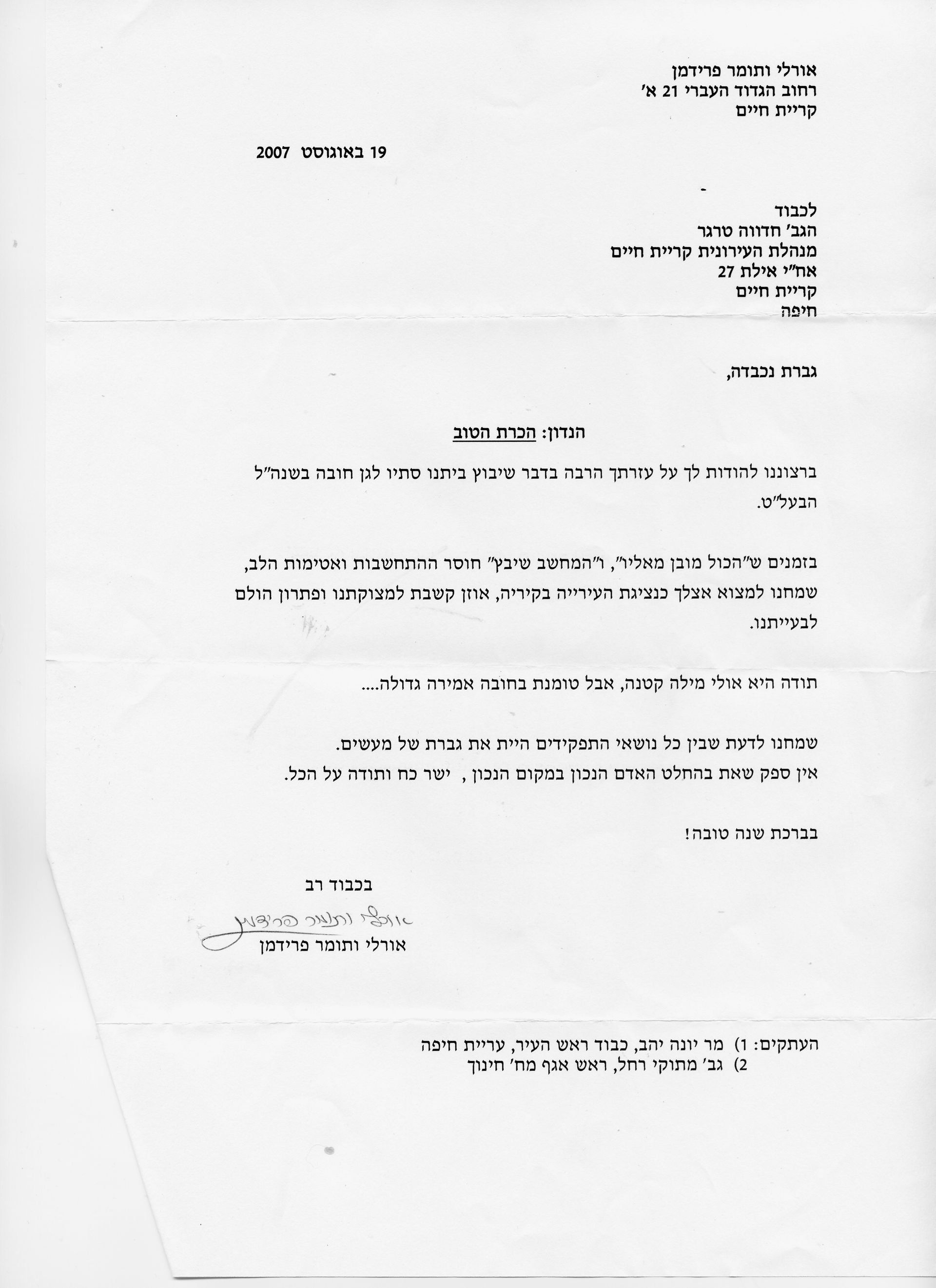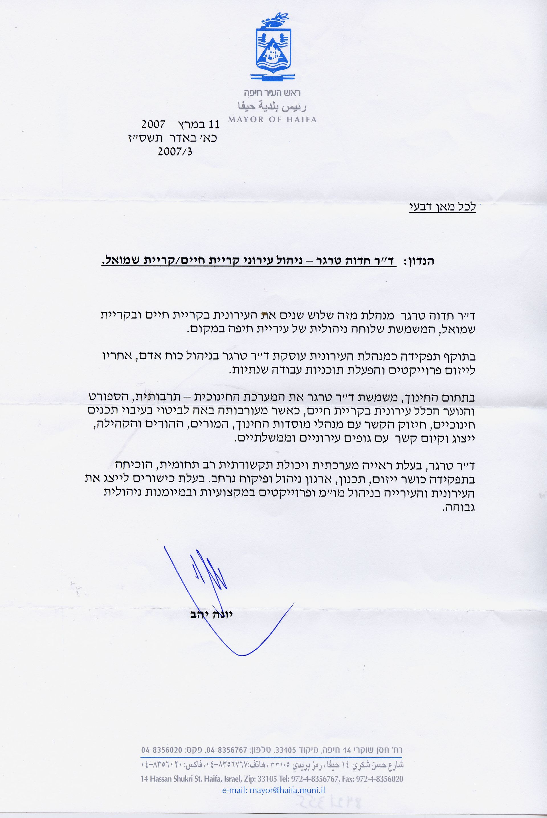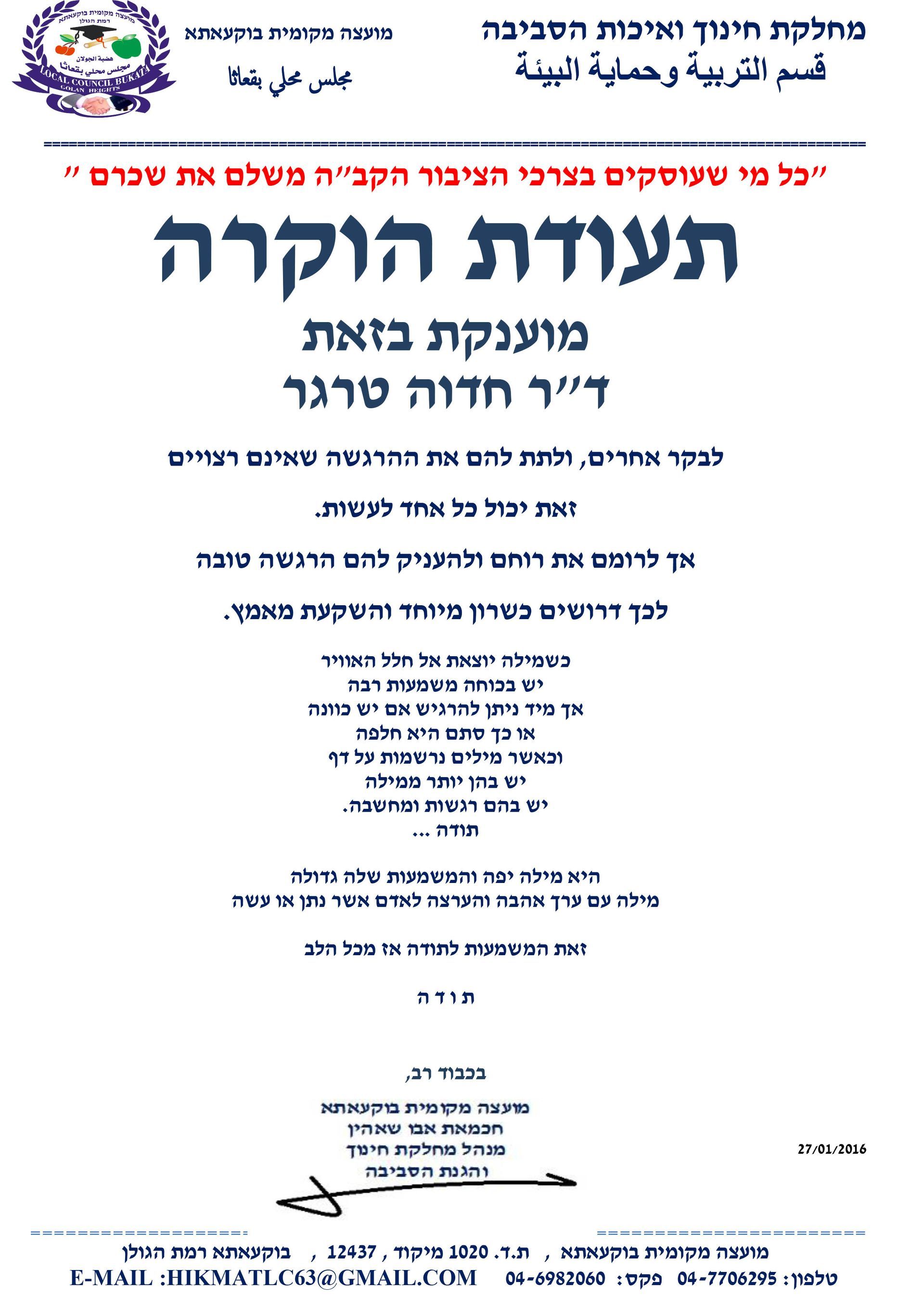 "העבודה של ד"ר טרגר בקהילה היא מרשימה ביותר. היא מצליחה לחבר בין אנשים, ליצור שיתופי פעולה משמעותיים ולהניע פרויקטים לטובת הקהילה כולה."
